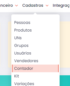 - Acessar o menu: Vá em Cadastros > Contador.