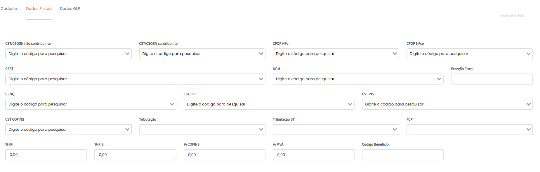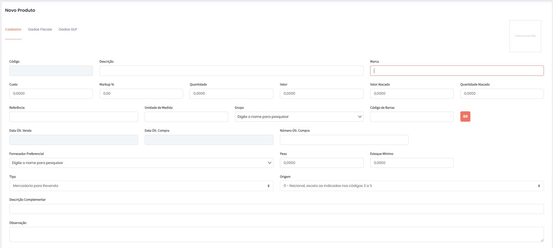 💡 Dica: Adicione uma imagem ao produto clicando em Inserir Foto.