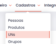 - Selecione UNs (Unidades de Medida).