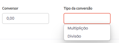 - Na tela de cadastro, localize a seção Tipo de Conversão.