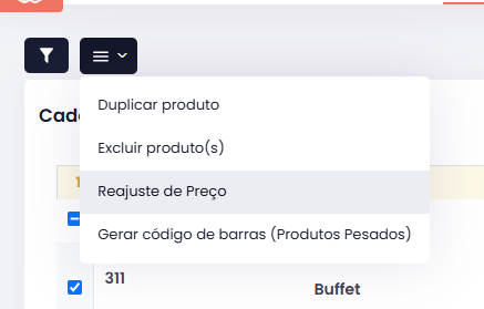 2. No menu suspenso, escolha a opção Reajuste de preço.
