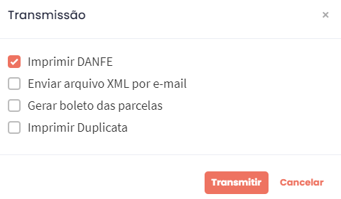 1. Imprimir DANFE (marcada por padrão): Gera o PDF da nota fiscal.