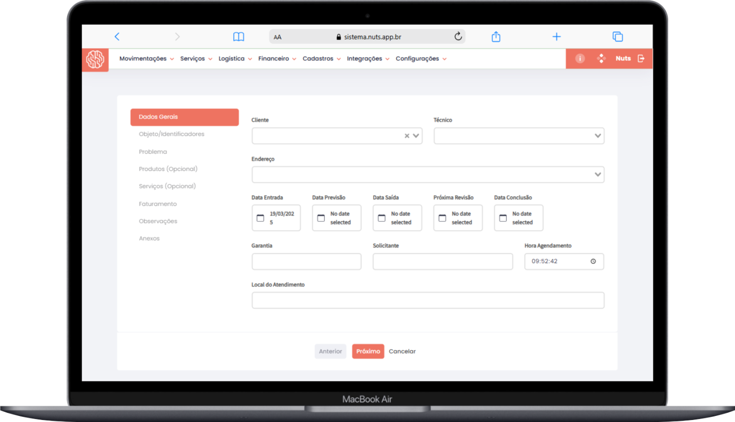 Nota: A OS pode ser editada posteriormente para incluir mais informações, como datas de saída e conclusão.
