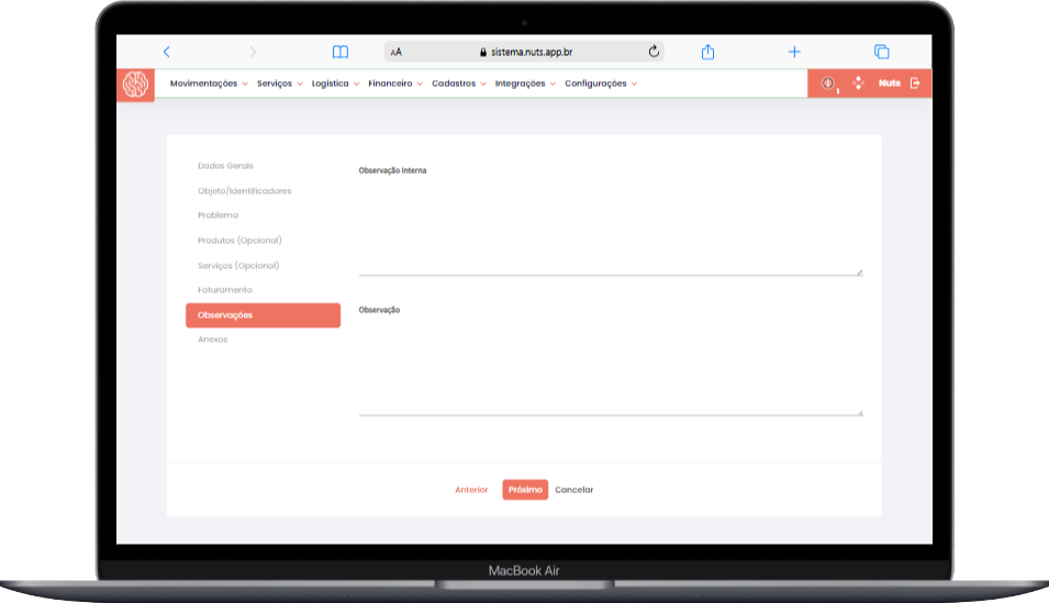 • Observação Interna: Visível apenas no documento OS para Técnico.