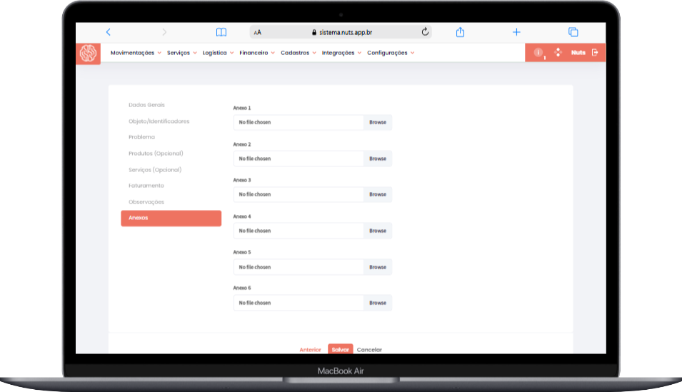 • Possibilidade de anexar até 6 arquivos, incluindo documentos, imagens e PDFs.